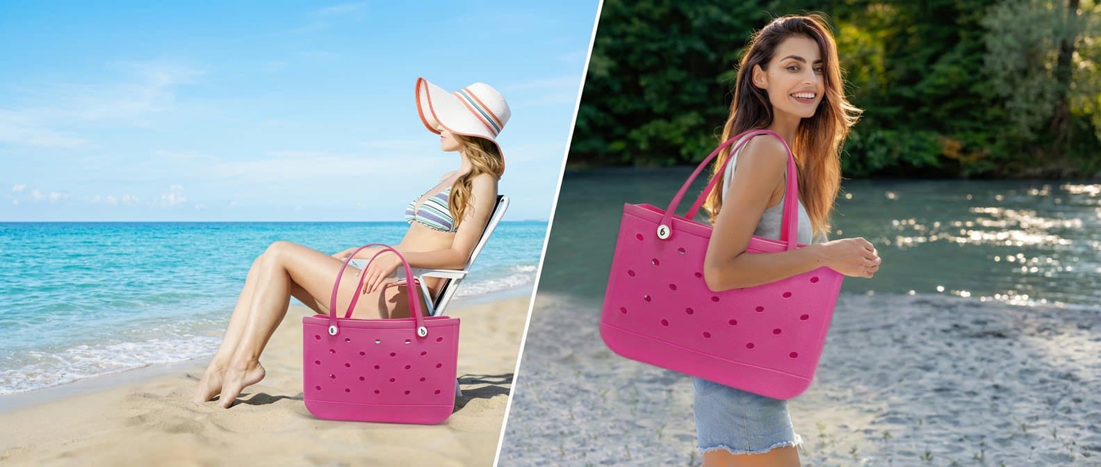 EVA Waterproof Beach Tote Bag - Washable Rubber Bag for Beach Pool Boat Sports